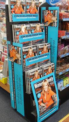 We are promoting the latest issue of the Australian Women’s Weekly on one of our ACP basket builder stands at the entrance to our main women’s magazine aisle.