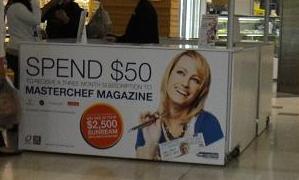 Check out the kiosk right out the front of a newsagency in a major shopping centre. It is offering a free three month subscription to Master Chef magazine to anyone spending $50 in the centre. I am not against the promotion itself, just the placement of the kiosk out the front of the newsagency, impeding traffic flow and distracting shoppers who might otherwise have seen the Master Chef display in the newsagency and bought a copy.