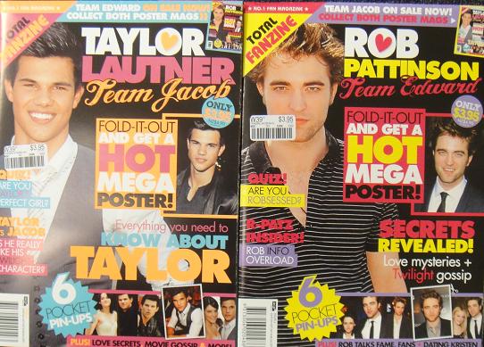 Like most newsagents I am sure, we have received plenty of stock of two new fanzines: Rob Pattinson and Taylor Lautner. Besides the cash flow hit we have to find space for two new titles in an already crowded category.