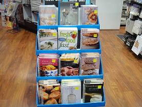 Our display of cookbooks (in the photo on a re-purposed Darrell Lea stand) , strategically placed to confront shoppers heading to our main newspaper stand, is working very well. What we have left is a fraction of the cookbook range we started with a few weeks ago.