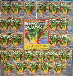 We are promoting the latest issue of Burke’s Backyard out the front of the store and facing into the mall. We are trying to attract traffic with this simple yet bold display. The cover looks terrific.