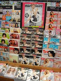 We are promoting the 15th anniversary issue of marie claire with this in-location double waterfall as well as a billboard display at the end of this aisle. The premium free gift and the anniversary itself should drive good sales.