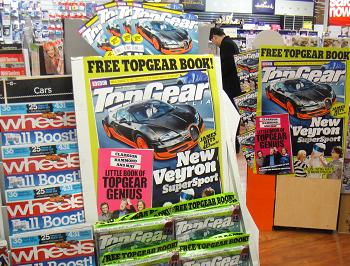 Look at the photo carefully and you can see that we have having a double crack at promoting the latest issue of Top Gear magazine. There is the in location display (which is now a regular feature of our Top Gear strategy) and a metre or so away a display which is stuck on the back of a couple of impulse units at the main sales counter. guys shopping this aisle will find it hard to miss this month’s Top Gear.