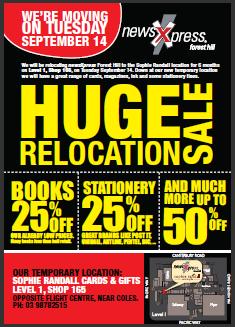 We are relocating our newsagency early next week for around six months while our current location is required for major construction at Forest Hill Chase.