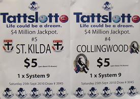 We are embracing AFL finals fever with house syndicates for Collingwood and St Kilda for Saturday night’s Tattslotto draw. From the moment we put signs up customers started commenting about the game and their preferences. These syndicates are priced lower than our usual syndicates to encourage them being purchased in addition to regular purchases.