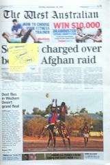 The West Australian today has an ad for MBF stuck on top of the headline on page one of the newspaper. While I understand the need for publishers to make a buck where they can, I have to ask – what is the value of a headline in driving sales if it is partially covered up by an ad? I like The West Australian, it is a newspaper for its marketplace. I’d say it is currently the best newspaper out of single newspaper capital cities. I don’t like the ad because it detracts from what the newspaper is about.