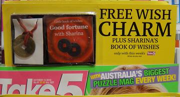 We are promoting the latest issue of Take 5 magazine, which comes with a free charm and a small book of book of good fortune wishes, at – where else? – our lottery counter of course! This issue of Take 5 is made for a lottery counter promotion. We also have it in our impulse stand near the store entrance as well as in its usual location.