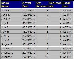 Look at the sale and return data for a title received by a colleague yesterday. The allocations system used by the distributor is increasing supply without reasonable justification – based on the numbers. While thay could argue that the sellouts in July justify an increase, I would argue that these sell outs do not justify the 100% increase in supply delivered by the magazine distributor.