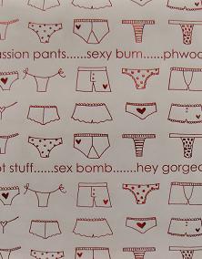 This is my fav wrapping paper of all time! Lucky the customer did not come in during Valentines Day … Fluffy handcuff, karma sutra chocolate, choc body paint, blindfolds … She may have had a heart attack!
