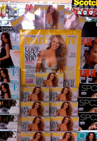 We have been promoting the latest issue of marie claire with this column based display at our Frankston store. In addition to this feature display facing our dance floor, we have the title located in our women’s magazine section. Like all good feature displays, it is easy for our customers to purchase right off the column. We choose titles for these displays based on what we see as their opportunity for cut through. This so often depends on the cover.