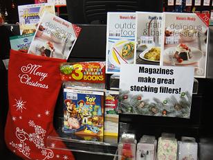 Check out the terrific display promoting magazines as Christmas gifts created by the team at my newsXpress Knox store. The sales counter display shows off one of our Christmas stockings and a range of titles which easily fit into the stocking.