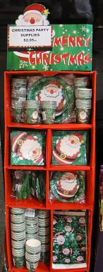 This stand of Christmas party goods is selling well. We have it in several of my stores, placed near the entrance – leading to good impulse purchase business.