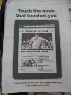 The front page of the Courier Mail newspaper today is a huge ad for their new iPad app.