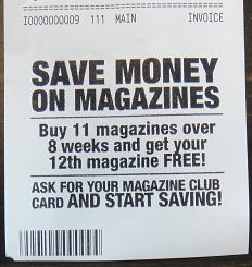 I created our Magazine Club Card in August 2004. It is an important and valuable point of difference for us over the supermarkets and other retailers selling magazines nearby.