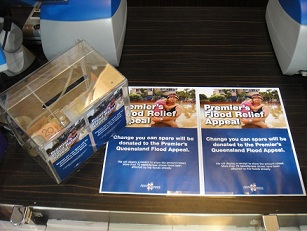 Just as we found with the Victorian bushfires appeal, we are finding our customers responding positively to the collection of funds for donating to the Queensland Premier’s Flood Appeal. From small change to lottery syndicate wins of $10 and more, money is getting dropped in. This is wonderful to see.