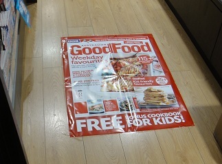 We have placed the large A1 size poster promoting the latest issue of Good Food magazine on the floor in the middle of the aisle. It has been placed in front of the column of Good Food magazine stock. There is no missing this poster – hopefully is delivers a good kick in sales in this first week.