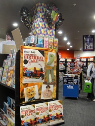 Our sales of the Women’s Weekly Children’s Birthday Cake Book, the reprint of the cookbook from 25 years ago, are excellent. Our team moved the display so that it is in front of our new party department, next to children’s cards. The photo shows what shoppers see as they enter the store next to our greeting card wall. This display is working a treat. based on customer feedback, I’d expect sales of this cookbook to continue for some time. The nostalgia appeal is high and this is driving good word of mouth – we see it!