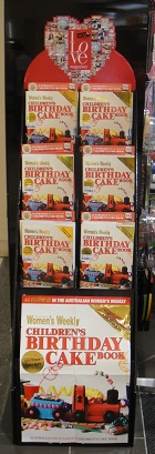 We are reusing the I Love Magazines stand from ACP to promote the classic Children’s Birthday Cake Cookbook out the front of one of my newsagencies, facing into the shopping mall.