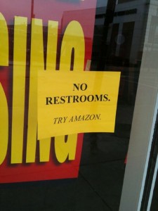 Someone with a good sense of humor at a closing Borders store in Chicago posted this sign on their restroom door. Source: [e-reads].