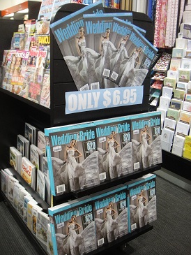 We are taking the heightened interest in weddings, well the imminent royal wedding at least, as an opportunity to promote the Melbourne Wedding Guide in our best magazine promotion location this week capping one of our magazine aisles and facing toward the front of the newsagency. The collateral for the display was created in-house by our creative team. It gabs your attention when you enter the store … anyone planning a wedding will be encouraged to pick up the title on impulse, especially given our promotion of the good value price point – $6.95.