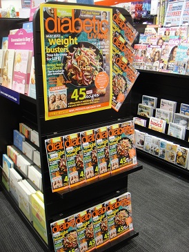 We are promoting the latest issue of Diabetic Living with this aisle end display as well as with placement in the health, food and women’s weeklies section. We aisle end display will get five, maybe seven, days. The co-location of Diabetic Living will run for a month as we know that the title performs well with the weeklies as well as in health and food – what many newsagents consider to bee the more natural locations for the title. We will probably give the title a run with daily newspapers for a few days during the on-sale, we can usually pick up some good impulse business there.