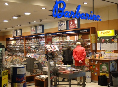 If what I have seen is the case across the country, shopping malls here in Germany usually have just one newsagency. The store in the photo was no more than 60 square metres. The products offered are: magazines (between 700 and 800 titles), Lotto, tobacco products, drinks and not much else.