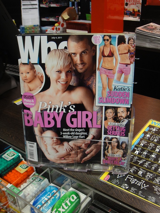 We followed our own advice and put Who magazine at the counter in my newsagencies and saw impulse purchases as a result of the Pink cover story and her new baby. Nothing complex here – a simple placement so that shoppers can see the full cover at the sales counter … a nice and welcome addition to any sale.