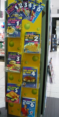 We have been promoting Annette Sym’s Symply Too Good range in another of my newsagencies with success. This display on a column is at the front of the newsagency – it is seen by shoppers as they go to leave the store. It shows off the range and makes it easy for shoppers to browse each title. Click on the image to see a larger version of this phone.