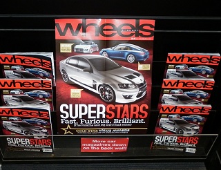 The team at on of my stores is cleverly promoting our car magazine sections with this front of store Wheels magazine display.