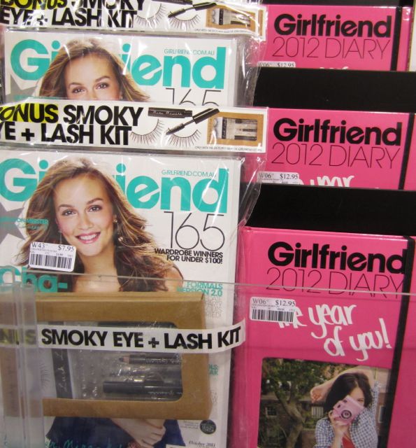 Girlfriend magazine and the Girlfriend 2012 Diary next to each other (see photo) offers a better chance of selling both. They are in an eye-level position … prime space.