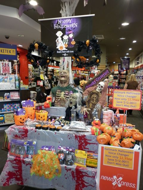 The proactive team at one of my newsagencies refreshed the Halloween display earlier this week. Check out the refreshed display in the photo. Talk about retail theatre.