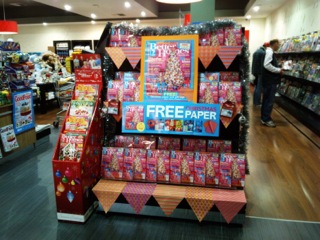 Check out the display created by the team at one of my newsagencies this morning promoting the free wrapping paper with the latest issue of Better Homes and Gardens. The team used paper from some damaged issues for the display – along with the terrific collateral provided by Pacific Magazines.