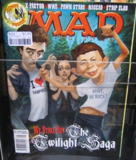 We are supporting the latest issue of MAD magazine with this full cover showing placement. Anything to make fun of the Twilight movie franchise right?! MAD sales are not great for us so hopefully this timely cover will generate some incremental business. This is one of those titles which will be purchased on impulse based on the cover.