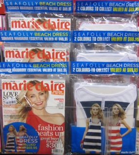 We are promoting the latest issue of Marie Claire magazine with a terrific in-location display. We have folded the package out so that shoppers can see the value of what is on offer with the magazine.