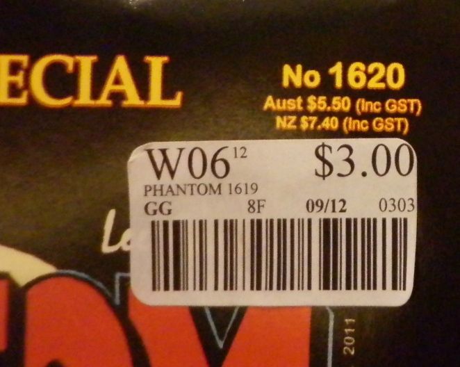 The EDI file for Phantom Christmas 1620 had a price of $3.00. The $A price printed next to the barcode on the cover shows a $A price of $5.50. A call to Gotch has revealed that they have realised the mistake, credited us for the wrong low price and invoiced us for the higher right price. Gotch did this without telling us. In the meantime we have sold copies at the low price. Now we have to chase being compensated for this mistake by gotch.
