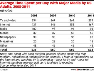 A report from eMarketer just out claims that Americans are spending more time reading their phones than print.
