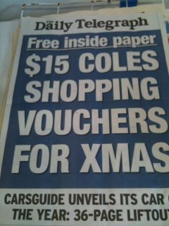 Check out the poster sent out with The Daily Telegraph today, making newsagents part of what I am guessing is a paid for advertising campaign with Coles.