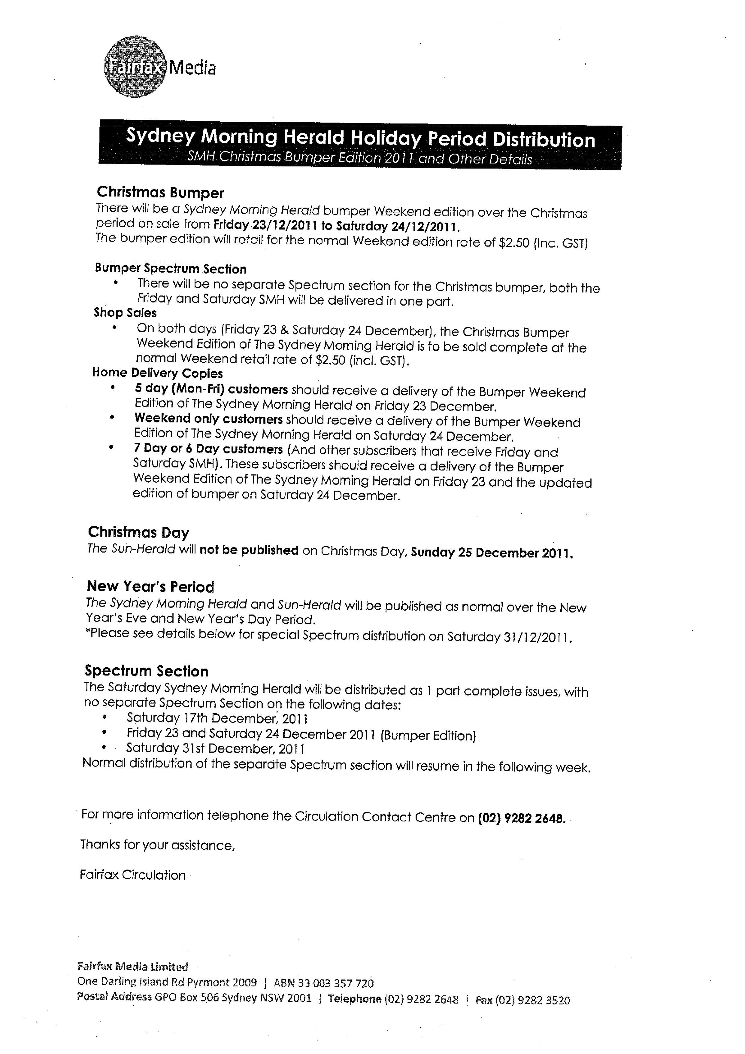 Clink on the image to see the notice sent by Fairfax to NSW newsagents re the handling of the Sydney Morning Herald over the Christmas period.