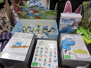 What you can see in the photo is all we have left of Smurf branded product. Sales are sure to be helped along today by The Smurfs: A Christmas Carol which aired on the Seven Network last night.