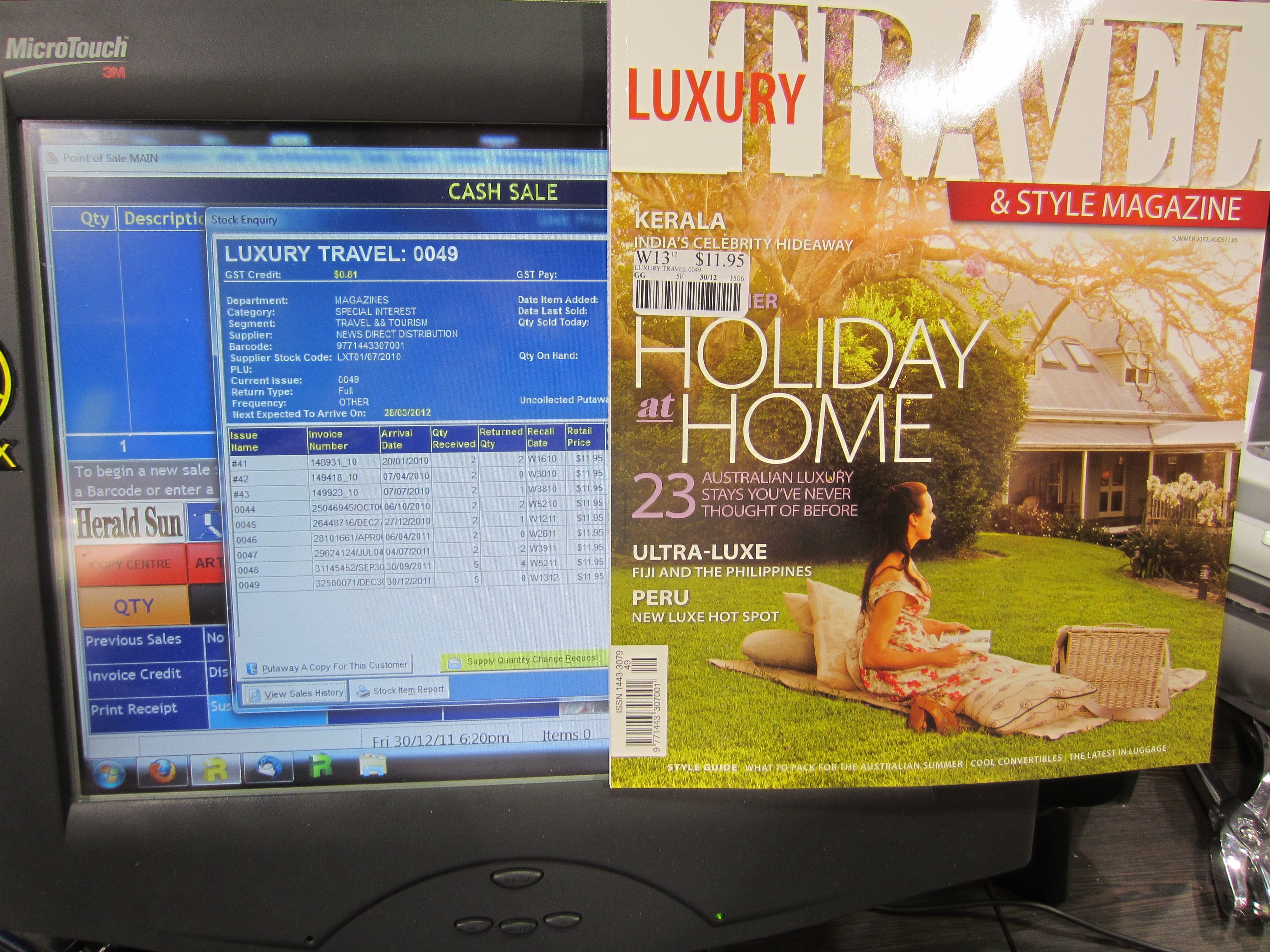 Our average sale of the imported Luxury Travel magazine is one copy. I can’t understand, therefore, why Gordon and Gotch would increase our supply from two copies to five. Is it a publisher decision or a distributor decision? Either way, we have considerably more stock than we could reasonably expect to sell.