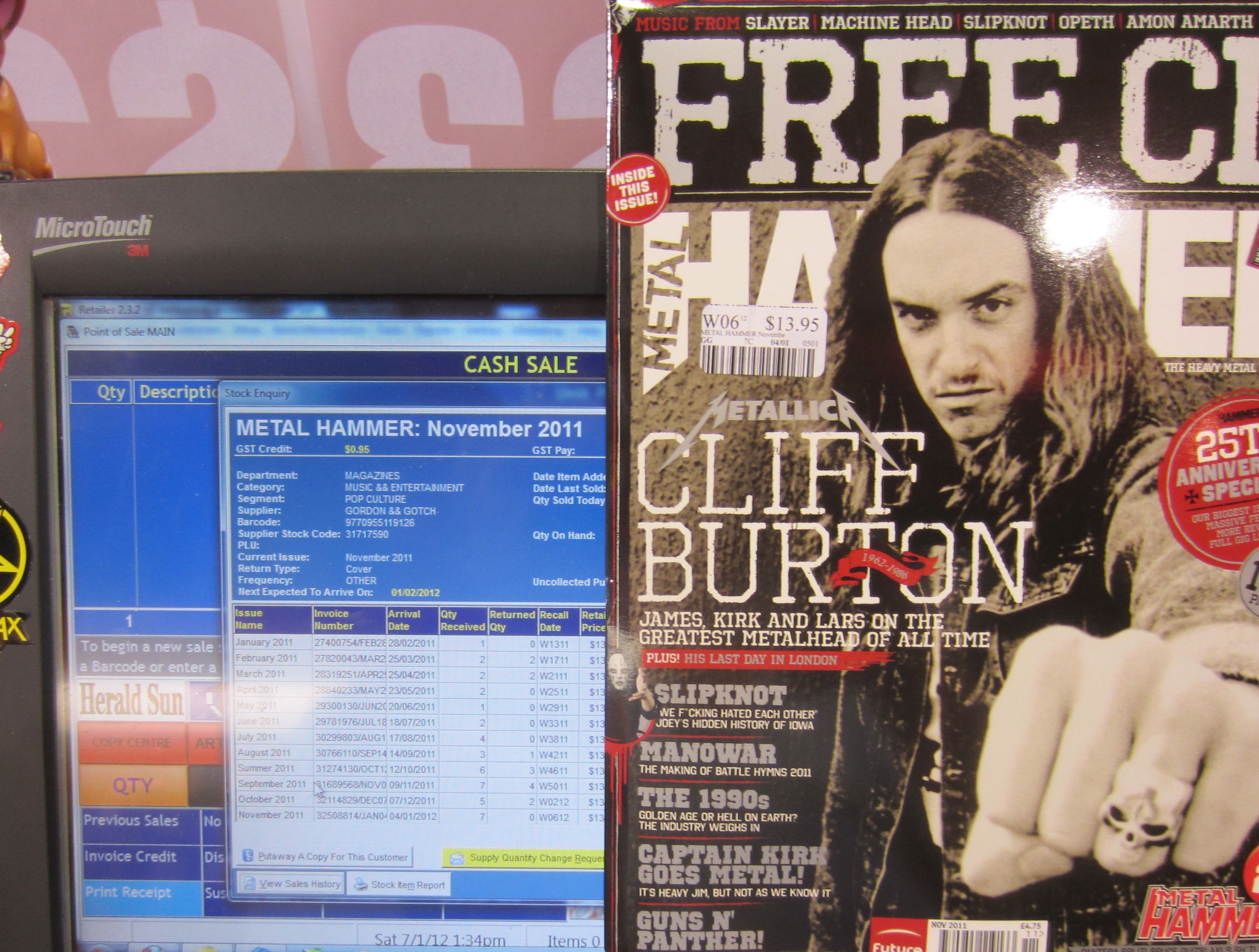 Check out our supply and return figures for Metal Hammer magazine. At best we sell three copies of each issue. Somehow the magazine distribution experts at Gordon and Gotch think we need seven copies. Based on our sales data we should get four copies of Metal Hammer and no more. This is a title which should sell out for a couple of issues at least before we get more stock. It sucks cash. If Gotch want us to be responsible for the cash they should give us responsibility for controlling what we get.