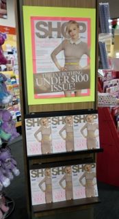 We are promoting the latest issue of Shop Til You Drop magazine with this display facing shoppers as they leave our magazine department and head to the counter.