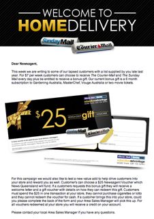 A couple of newsagents have complained to me about the latest Queensland Newspapers promotion to lapsed home delivery customers. They are frustrated that they have not been offered the promotion to offer themselves across the counter.