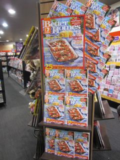 We are promoting the latest issue of Better Homes and Gardens magazine with this display on a column facing shoppers as they enter the newsagency. This is one of three promotional initiatives for this issue of the top selling title. We have a stack of copies with newspapers. We also have a bold in-location display.