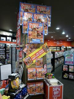 We are promoting the latest issue of Better Homes and Gardens with this display on a column facing shoppers as they enter our newsagency as well as with an in-location display in the usual location plus a stack mixed in with our newspapers.