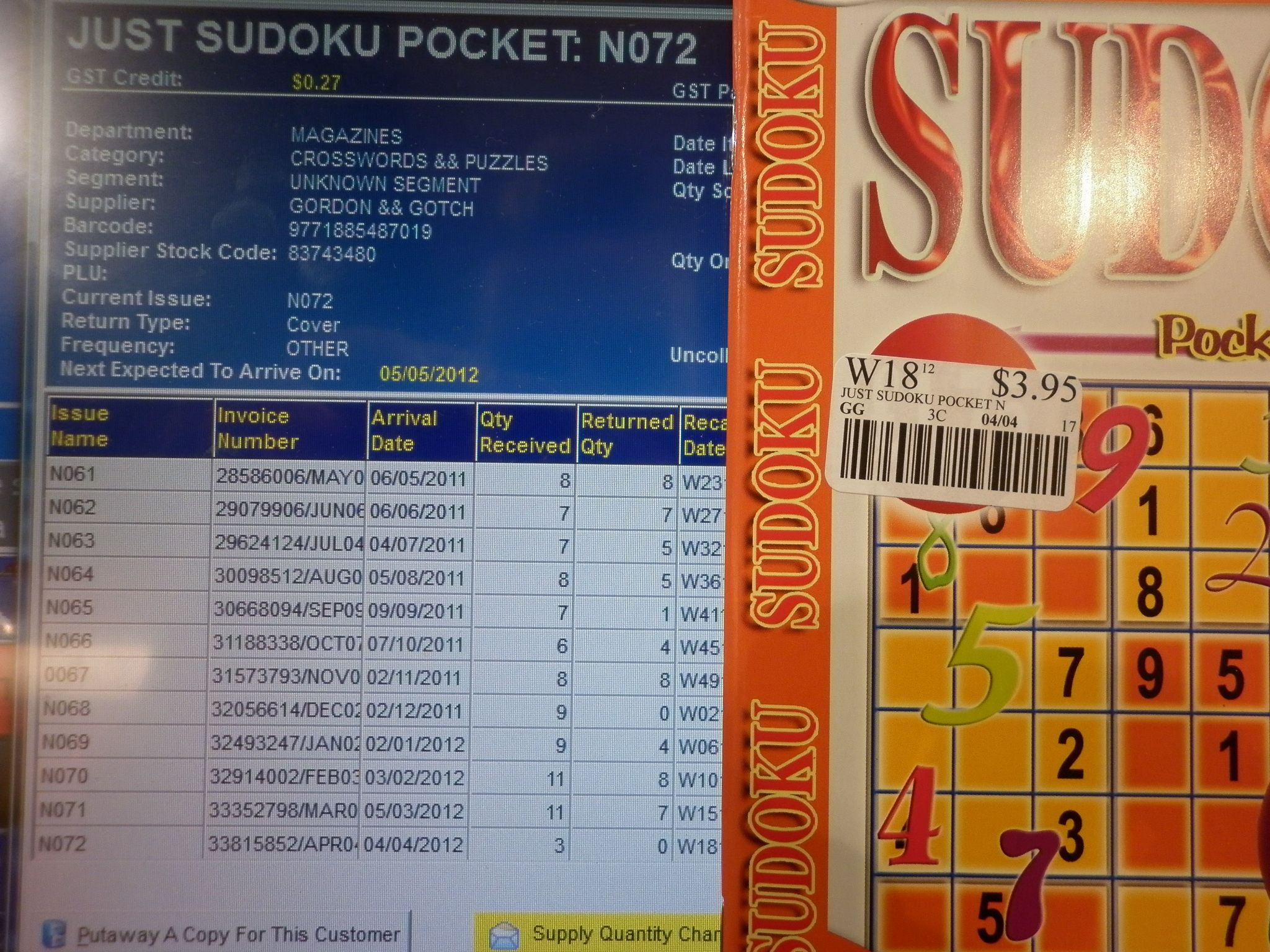 Here is another example of magazine supply reduction by Gordon and Gotch which is not supported by the sales data. They have cut us from 11 to 3. Based on the sales history (click on the image) we should be at 5 or 6. But go back through the history and see how badly they have handled this title.