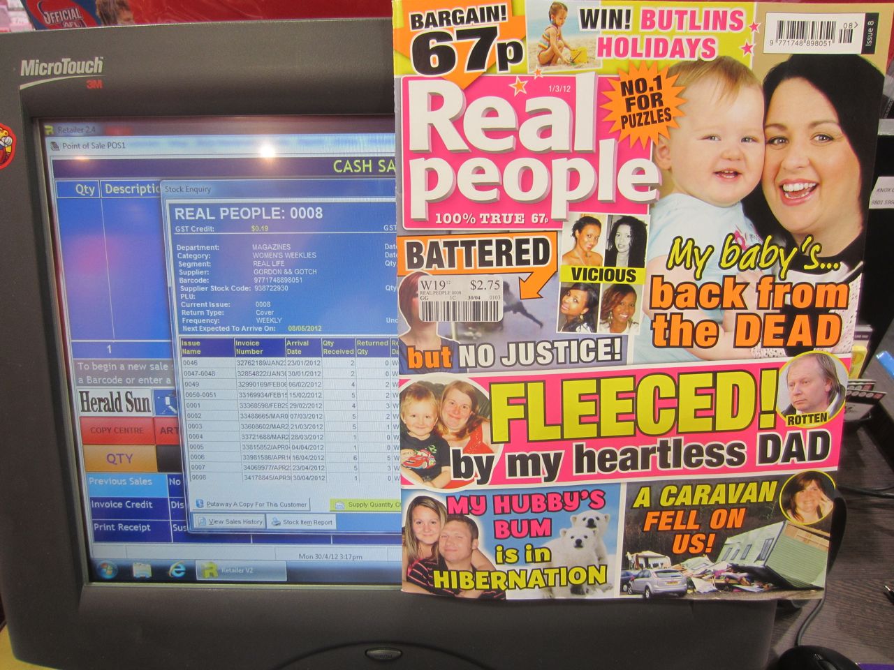 Gordon and Gotch recently cut our supply of Real People magazine as I blogged here. We had the former supply reinstated. Now, the experts at Gotch have cut us back again – denying us certain sales of a popular title. Click on the image for details of what Gotch has done by way of manual intervention to our supply of this title.