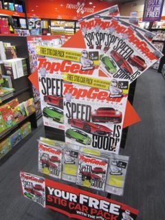 We are promoting the latest issue of Top Gear Australia with this aisle end display facing shoppers as they enter our magazine department. This is the best promotional position in the magazine department.