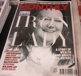 Gina Rinehart’s image owns the cover opt the latest issue of The Monthly magazine. She’s been in the news plenty over the last year so recognition should be high. I like the look of the cover … it’s a strong image and sits well against other magazine covers which are more colourful. We have been promoting The Monthly in the usual location as well as with a placement next to newspapers. It is title which needs extra promotion as sales can be considerably affected by the cover. hence my question: Can Gina Rinehart sell magazines?