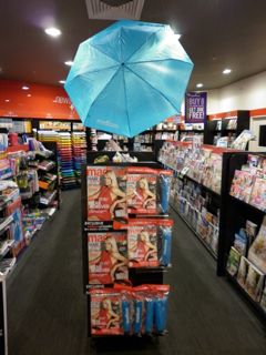 We are promoting Madison magazine and the free umbrella which comes with the title with this high-profile aisle end display.